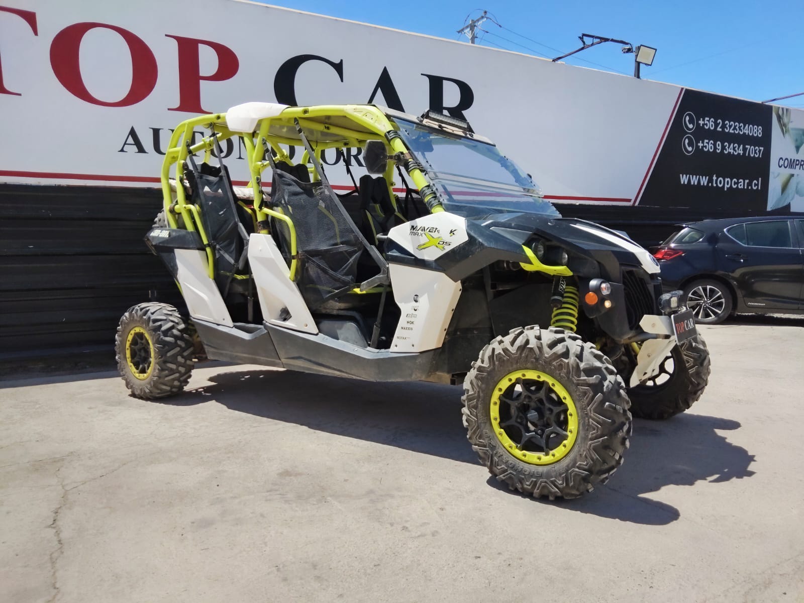 BRP CAN-AM 4x4 modelo Maverick 1000 Max XDS 4 plazas. Transmisión Automática y motor 1000 Bencinero con tan solo 4.300 km. Cuenta con DPS (Dynamic Power Steering) Dirección Asistida Dinámica | 3 Modos de conducción: Normal, Eco, Sport | Over Drive | Selector electrónico para cambio de tracción 4x4 o sencilla para la calle | Homologado con patente para circular por la calle | Todos los documentos al día | Equipado con sistema de inforentretenimiento con pantalla táctil de 10" y conexión Bluetooth/USB | Sistema de sonido JBL | Frenos de disco en las 4 ruedas | Suspensión FOX | Llantas de aleación de 14" | Disponible en nuestra surcursal Topcar Automotora Maitencillo. Contacto Andrés Limongi +569 34347037 / 953857717 (Atención Whatsapp 24 hrs.) www.topcar.cl