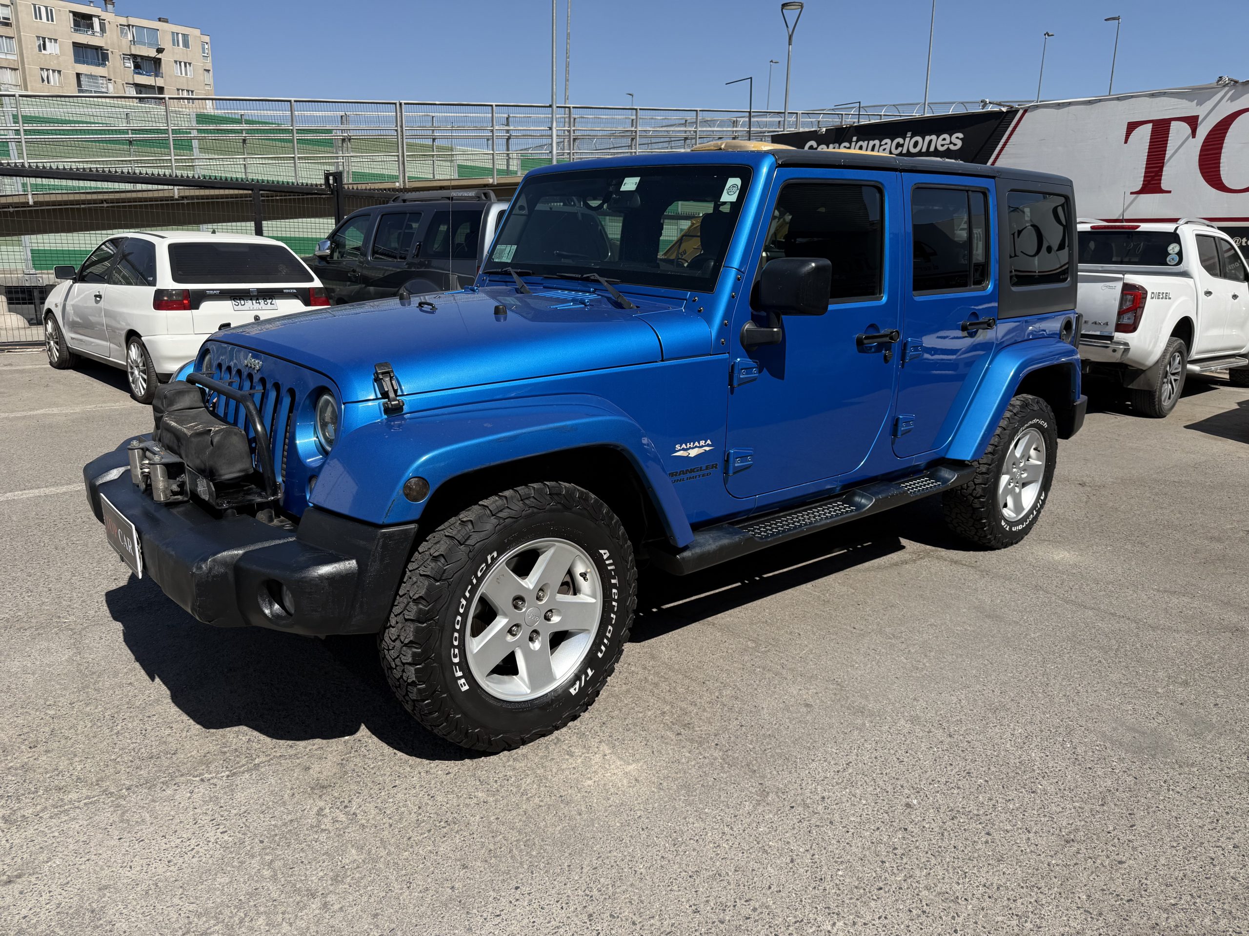 Jeep Wrangler version Sahara descapotable, excelente estado, version 2.8 L diesel 4x4,  solo 159.000km. equipada con huinche, radio con pantalla touch, camara de retroceso, palanca de 4x4 al piso, neumaricos BF GOODRICH al 80%, incluye control de huinche, y copia de llave. Documentacion al dia y a toda prueba. Recibimos vehiculos en parte de pago, pagos con tarjeta de credito y evaluamos financiamiento. Contacto: Marco Antonio Caballero, cel +56947045341 Visitanos en nuestra sucursal vespucio, Americo Vespucio 0447, La Cisterna, de lunes a Viernes de 09:00 a 19:00 horas, Sabado hasta las 18:00 horas.